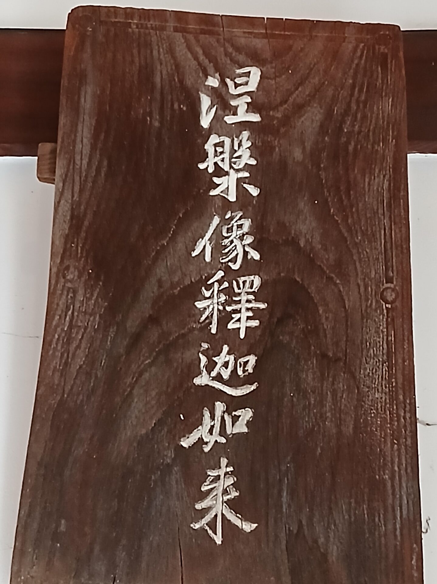釈尊入滅の姿の仏像です。頭は北、お顔は西、頭北面西(北枕)で寝ておられます。
